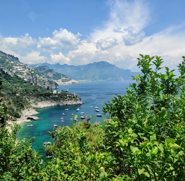 If you want to see the Amalfi Coast from above, Ravello is the place to be. It's perched high in the hills—enough to notice the cooler air compared to the towns below. There are sweeping panoramic views, quiet gardens, and flowers all around, their perfume lingering in the air. Ravello was noticeably calmer with fewer people wandering the cobblestone streets. It's the ideal time to stop for a gelato and watch the locals mingling in the piazza. I remember Ravello as the town with sweet scented floral air as the cool breeze brushed over me. I can still smell it!
