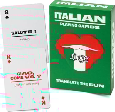 Lingo Italian Playing Cards, Travel Flashcards, Italian Vocabulary, 52 Translation, Fun way to lear