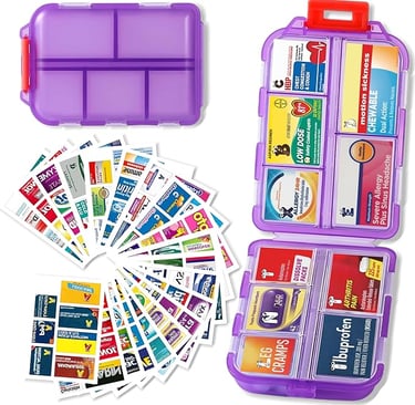 Pill Organizer with Medicine Labels for Travel Daily, Pill Container, Mini Medication Organizer, Multiple Colors Available