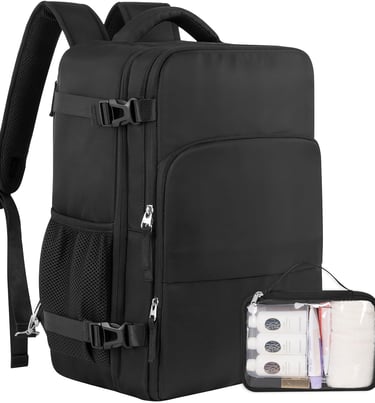 Sinaliy Travel Backpack, Waterproof 17.3inch, Carry on Flight approved, Travel Bag with Multi-Pockets, Black.